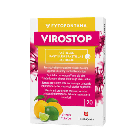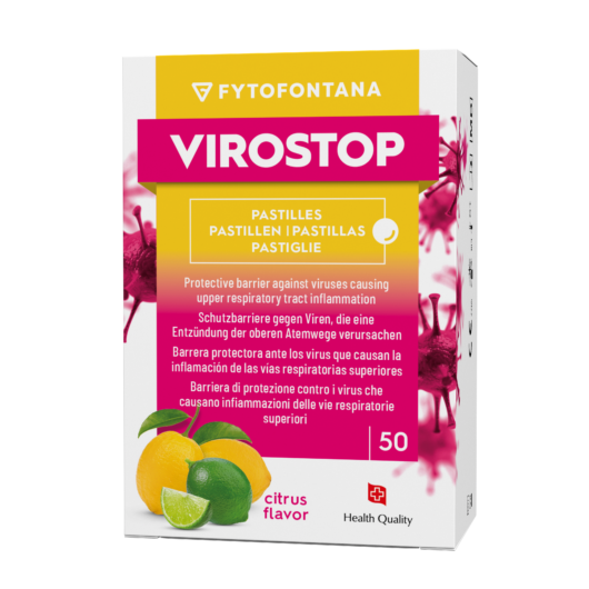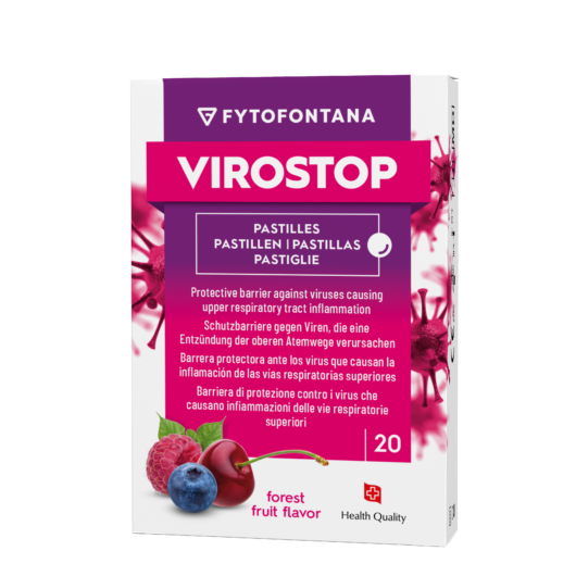 • The main mechanism of action of the medical device fytofontana VIROSTOP pastilles lies in its ability to cover the mucous membranes of the oral cavity with a protective film, thereby preventing the penetration of viruses into the body.